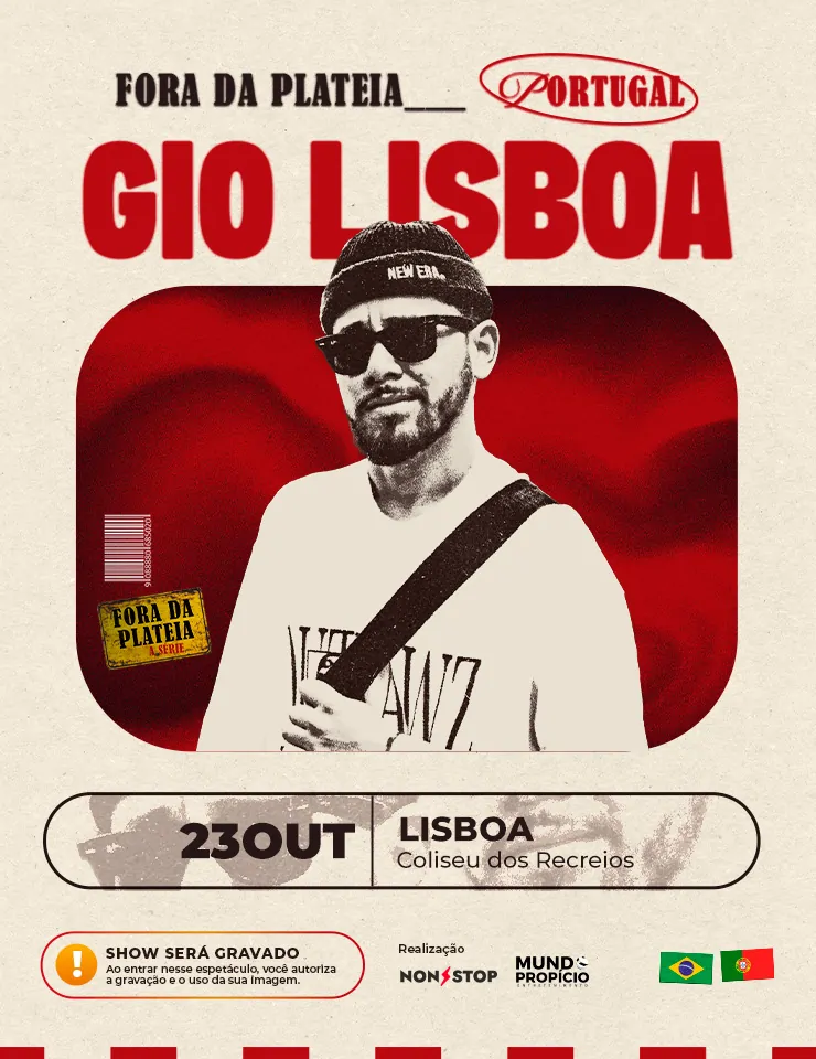 No próximo dia 23 de outubro de 2025, o humorista Gio Lisboa sobe ao palco do Coliseu de Lisboa com o seu mais ambicioso espetáculo até à data: “Fora da Plateia”, uma proposta inovadora que junta stand-up, música ao vivo, interação direta com o público e a gravação de uma série documental ao vivo.