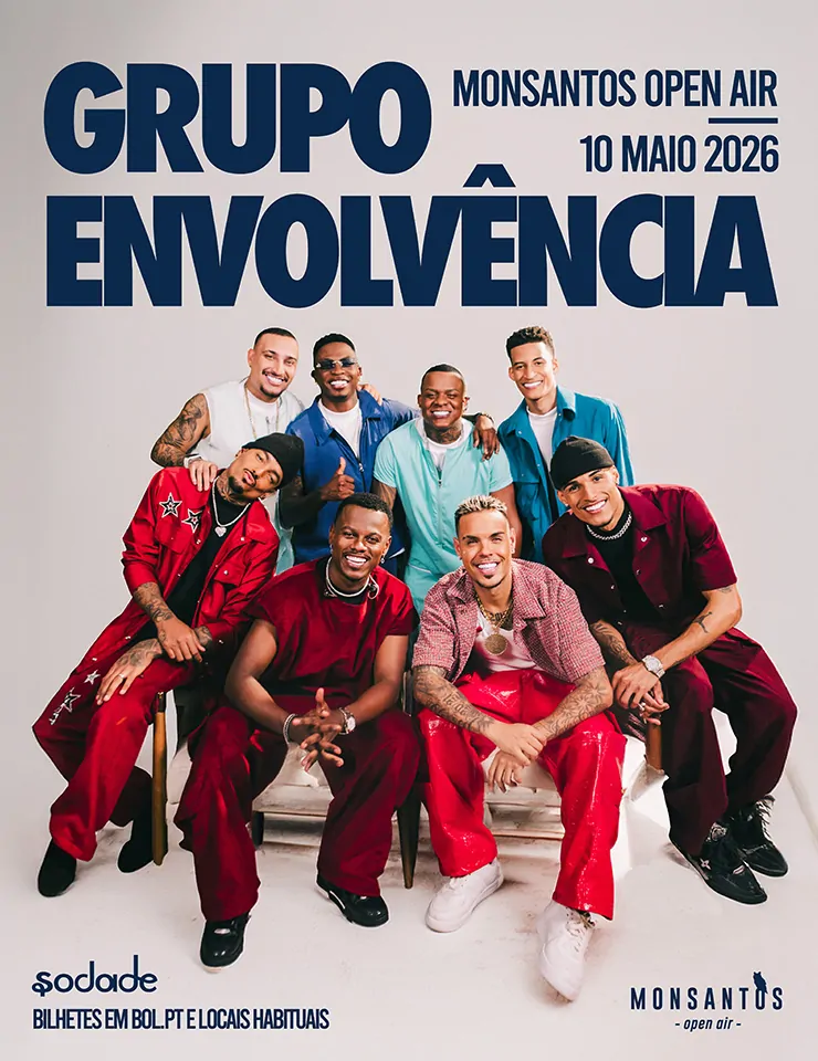 No dia 10 de maio de 2026, pelas 20h00, o Grupo Envolvência regressa ao Monsantos Open Air, em Lisboa, para uma noite dedicada ao samba e pagode, diretamente do Brasil, com produção de Pezinho e convidados especiais Sem Reznha. Vencedores de grandes festivais brasileiros, o grupo promete uma batucada envolvente, carisma em palco e um repertório com temas inéditos, releituras de sucessos clássicos do género e muita energia contagiante para fazer o público sambar.