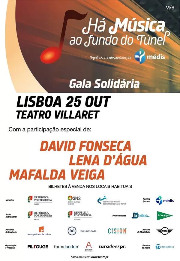 Este ano, na sua 3ª edição, cresce também para esta Gala Solidária que sobe ao palco do Teatro Villaret no dia 25 de outubro. Teremos a participação especial de David Fonseca, Lena d’Água e Mafalda Veiga entre outros convidados que, num ambiente animado, nos ajudarão a estabelecer a relação entre a música e a Saúde Mental.
