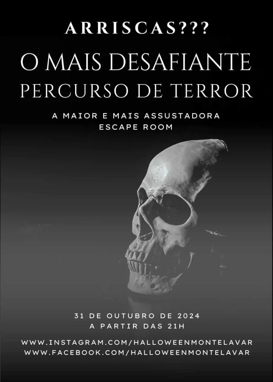 On October 31, from 21:00 to 02:00, the scariest Halloween trail is back at the Sociedade Filarmónica Montelavarense! Get ready for an exciting challenge!