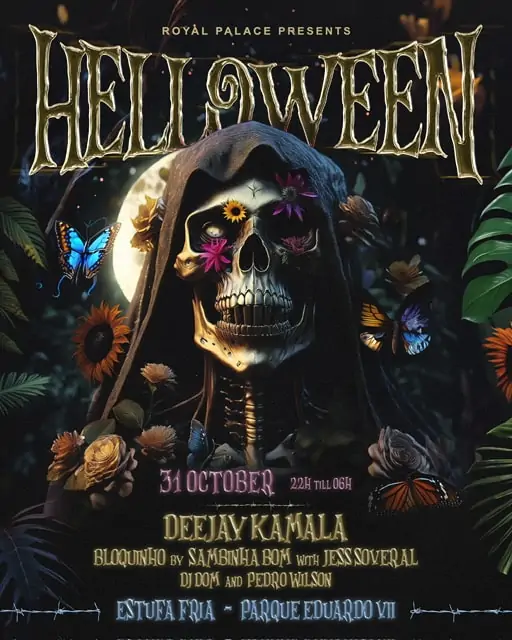 A Royal Palace apresenta o HELLOWEEN, a maior festa de Halloween da capital! Dos mesmos produtores da melhor passagem de ano de Lisboa, este evento promete ser uma experiência inesquecível com um lineup de luxo. Prepare-se para uma noite cheia de música e diversão, com as atuações de Deejay Kamala, Bloquinho by Sambinha Bom com Jess Soveral, DJ Dom 🇻🇪, e Pedro Wilson.
