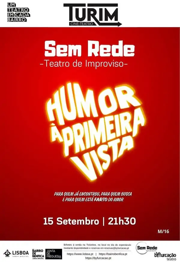 “Humor à Primeira Vista” é um espetáculo de teatro de improviso que celebra o amor em todas as suas formas. Com uma interação ativa com o público, este espetáculo depende inteiramente das reações e participações dos espectadores para garantir o seu sucesso. Explorando tanto o lado positivo quanto o mais complicado das relações humanas, os improvisadores navegam por temas como medos, inseguranças, paixão e sedução, em busca da cena perfeita.