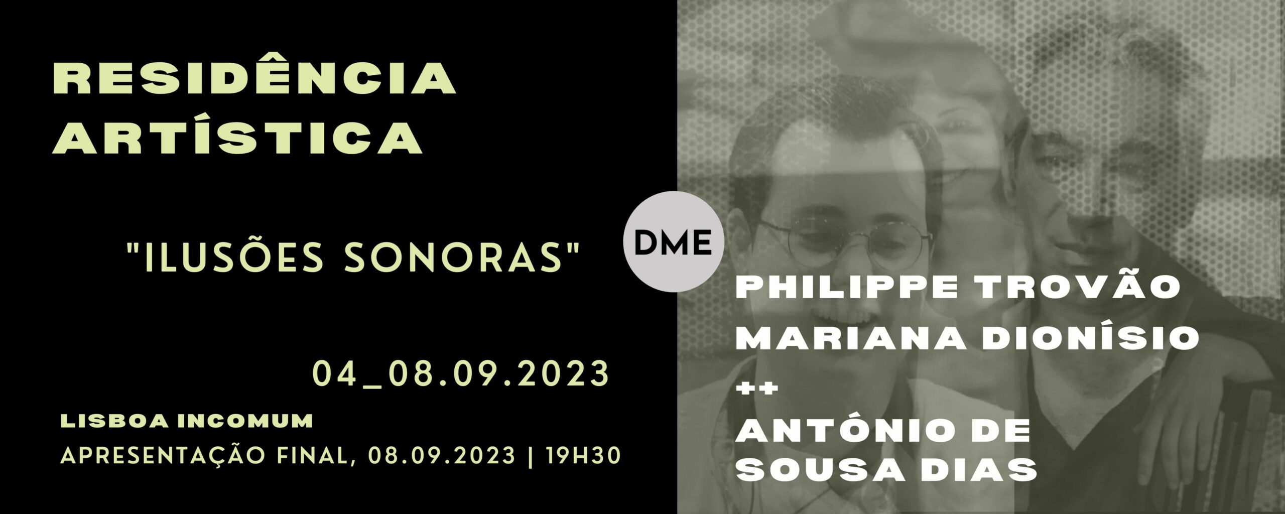 O saxofonista Philippe Trovão e a soprano Mariana Dionísio juntam-se em residência artística com o compositor António de Sousa Dias no espaço do Lisboa Incomum, integrada no Ciclo de Residências Artísticas DME, por forma a criar uma nova obra encomendada pelo Projecto DME, que explora ilusões e paradoxos sonoros.