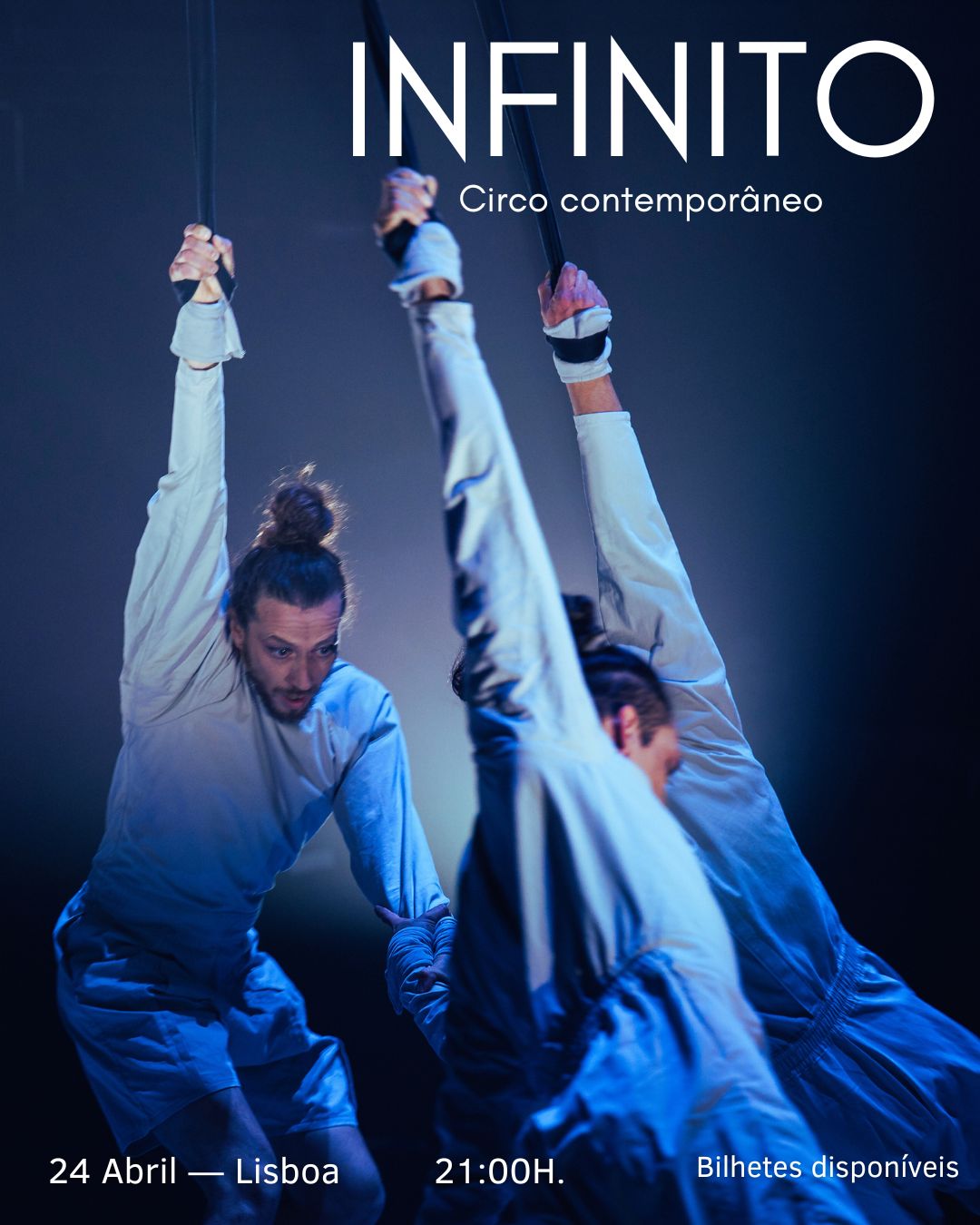 Infinito é uma criação de circo contemporâneo para três intérpretes, construída a partir do trabalho com fitas aéreas.