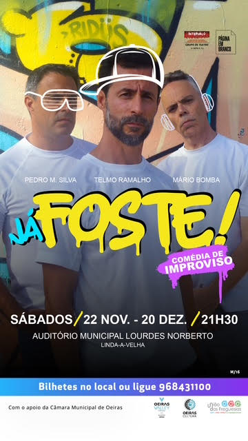 O espírito streetwise e a irreverência da cultura urbana chegam ao palco com “Já Foste!”, o novo espetáculo de comédia de improviso short form do grupo profissional de teatro Página em Branco. Com estreia marcada para 22 de novembro, no Auditório Municipal Lourdes Norberto, em Linda-a-Velha, promete gargalhadas e surpresas a cada atuação, tanto para quem assiste como para quem improvisa.