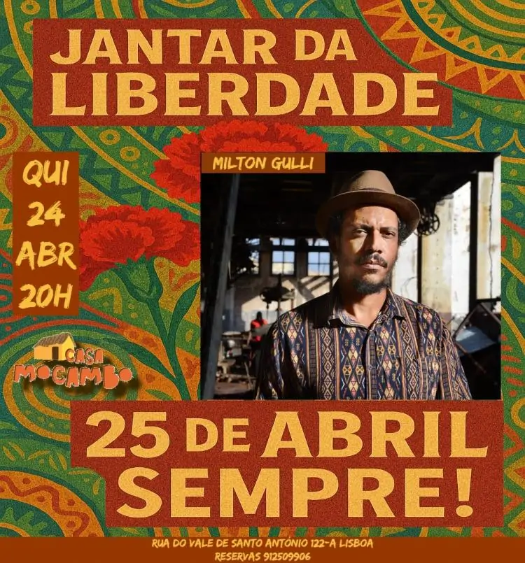 Em homenagem aos 51 anos do 25 de Abril, a Casa Mocambo convida para um serão especial com Milton Gulli, músico e ativista cultural que dá voz às lutas contra o fascismo, racismo, colonialismo e todas as formas de opressão.
