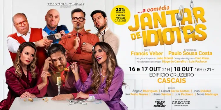 De quinta-feira, 16 de outubro, até sábado, 18 de outubro de 2025, a Academia de Artes do Estoril recebe a hilariante peça “Jantar de Idiotas”, uma comédia cheia de mal-entendidos, situações inesperadas e risadas garantidas.