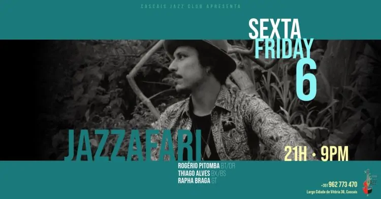 Venha desfrutar de uma noite de jazz com o grupo JAZZAFARI no Cascais Jazz Club. A banda traz uma performance energética e envolvente com vocais e instrumentais vibrantes. Os músicos incluem Rafa Braga na guitarra, Thiago Alves no baixo e Rogério Pitomba também no baixo, proporcionando uma experiência única para os amantes do jazz.