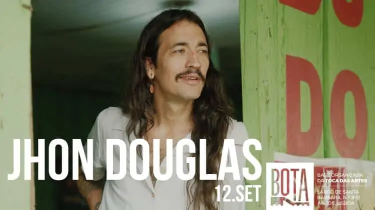 Descrição: Jhon Douglas, natural de Rondônia, na Amazônia Brasileira, é um artista multifacetado que se destaca pela sua versatilidade na música e nas artes plásticas e visuais. Com uma trajetória marcante e autodidata, Jhon iniciou a sua carreira nas ruas como skater e rapidamente expandiu-se para o mundo artístico. Desde 2016 em Lisboa, tornou-se uma figura ativa na cena cultural portuguesa, com atuações em importantes palcos e festivais.