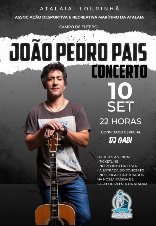 Concerto de Encerramento das Festas N. S. G. Atalaia com a actuação de JOÃO PEDRO PAIS e do Convidado especial DJ GABI.