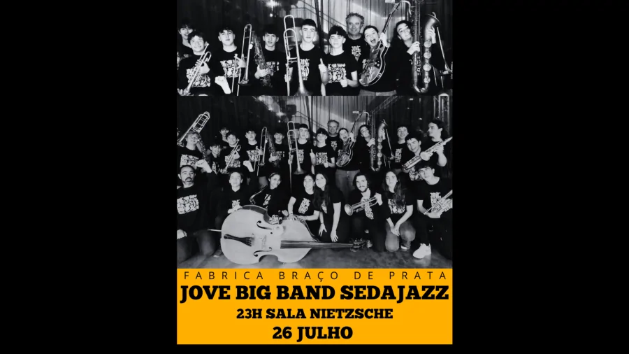 No sábado, 26 de julho de 2025, a partir das 23h, a Fábrica Braço de Prata será palco de uma atuação imperdível da Jove Big Band Sedajazz, uma formação vibrante composta por 23 jovens músicos que trazem ao palco a frescura, paixão e mestria do jazz.