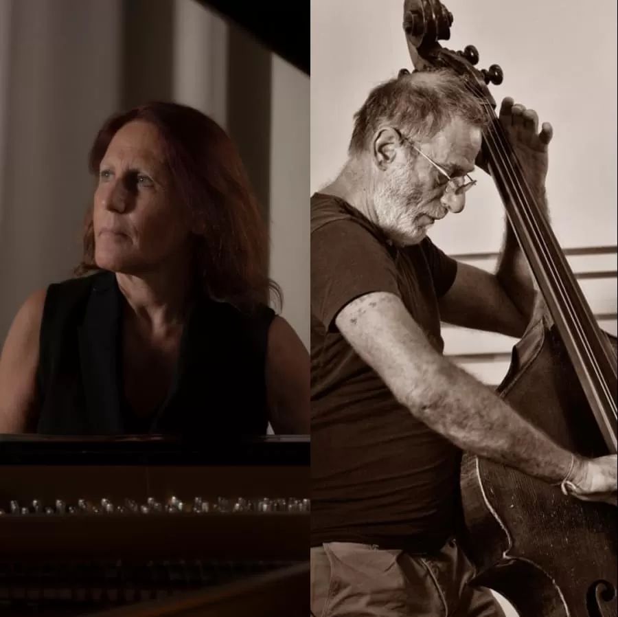 Uma composição improvisada de música contemporânea para piano e contrabaixo