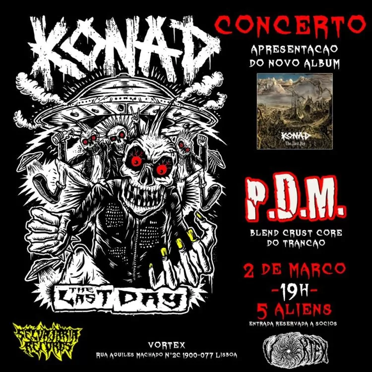 Os fodásticos monstros do metal crust nacional KONAD band apresenta o novo album no VORTEX – LX