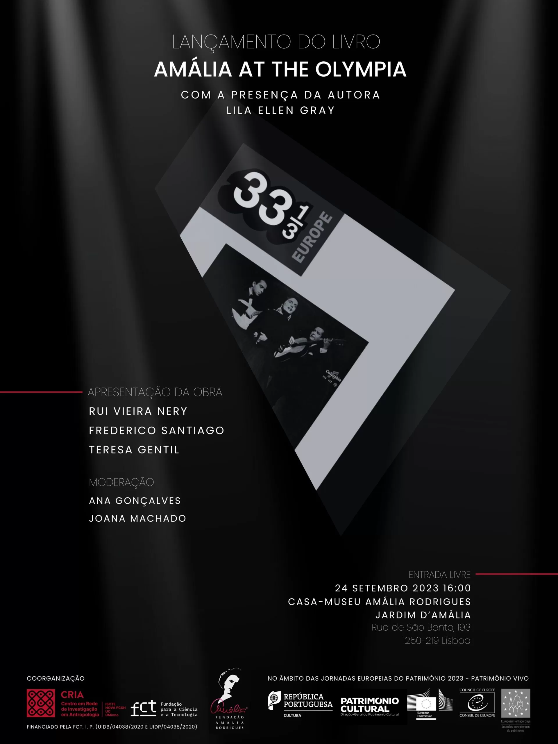 A sessão em que a obra será apresentada por Rui Vieira Nery, Frederico Santiago e Teresa Gentil contará com a presença da autora. A moderação será partilhada por Ana Gonçalves e Joana Machado. O evento é uma organização conjunta do CRIA-Centro em Rede de Investigação em Antropologia e da Fundação Amália Rodrigues, no âmbito das Jornadas Europeias do Património, este ano dedicadas ao património vivo.