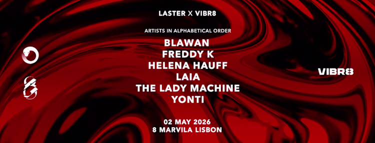 On May 2, 2026, VIBR8 and Laster return to Lisbon with a major underground rave at 8 Marvila.