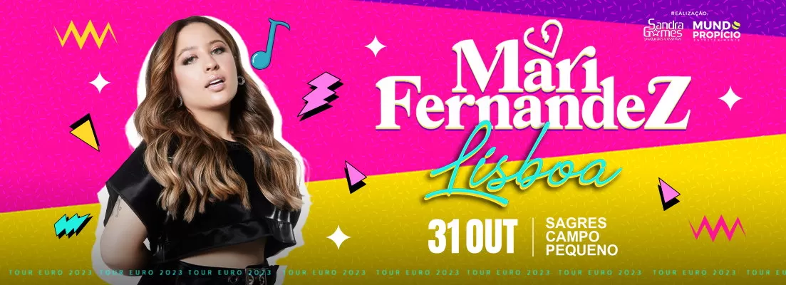 O grande revelação do Brasil estará pela primeira vez em Portugal, Mari Fernandez, dia 31 de Outubro em Lisboa (Sagres Campo Pequeno) e 02 de Novembro no Porto (Super Bock Arena)!
