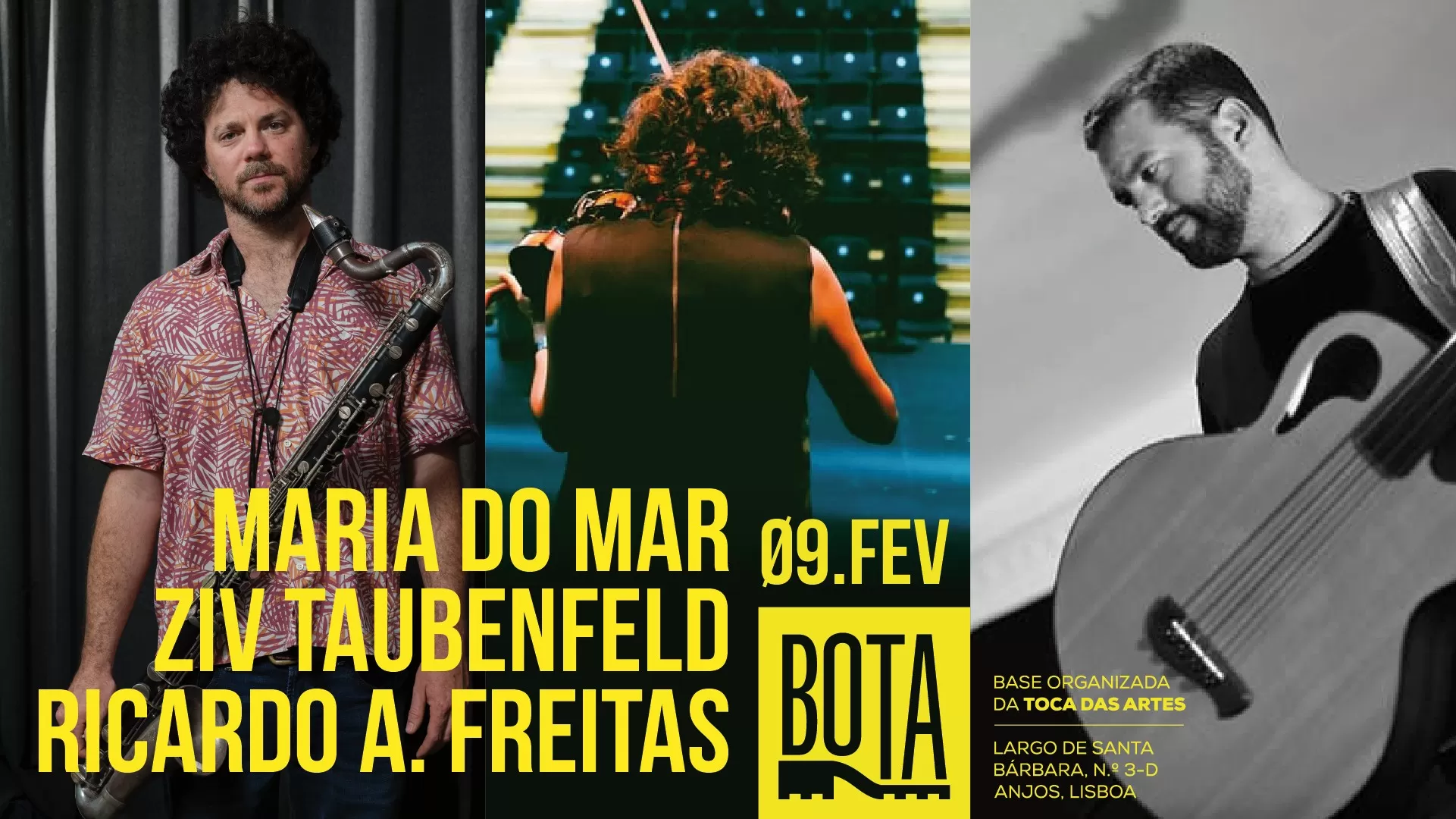 “A colaboração entre Maria do Mar e Ricardo A. Freitas existe há 10 anos, mas é a primeira vez que ambos tocam com o clarinetista baixo Ziv Taubenfeld. O contexto é o da música improvisada, ou mais exactamente da composição instantânea. Compõe-se no próprio momento em que é interpretada O duo da violinista e do baixista cria uma música plena de detalhes e quase camerística. Taubenfeld tem duas características: ou é um vendaval nos termos do free jazz e da livre-improvisação ou recorre a um lirismo melódico de grande beleza. É imprevisível o registo deste trio que agora se estreia: ou poderá ser cru e duro ou de uma leveza poética e introspectiva. E pode bem acontecer que abrace ambas as duas possibilidades. Será o que for e, com tais músicos, o que for será garantidamente de uma enorme qualidade.”