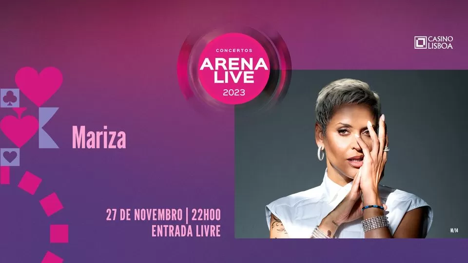 Nota: Informamos que as reservas de mesas no Arena Lounge já se encontram esgotadas para o concerto da Mariza. No entanto, pode jantar num dos outros restaurantes do Casino Lisboa e assistir ao espectáculo de forma totalmente gratuita.