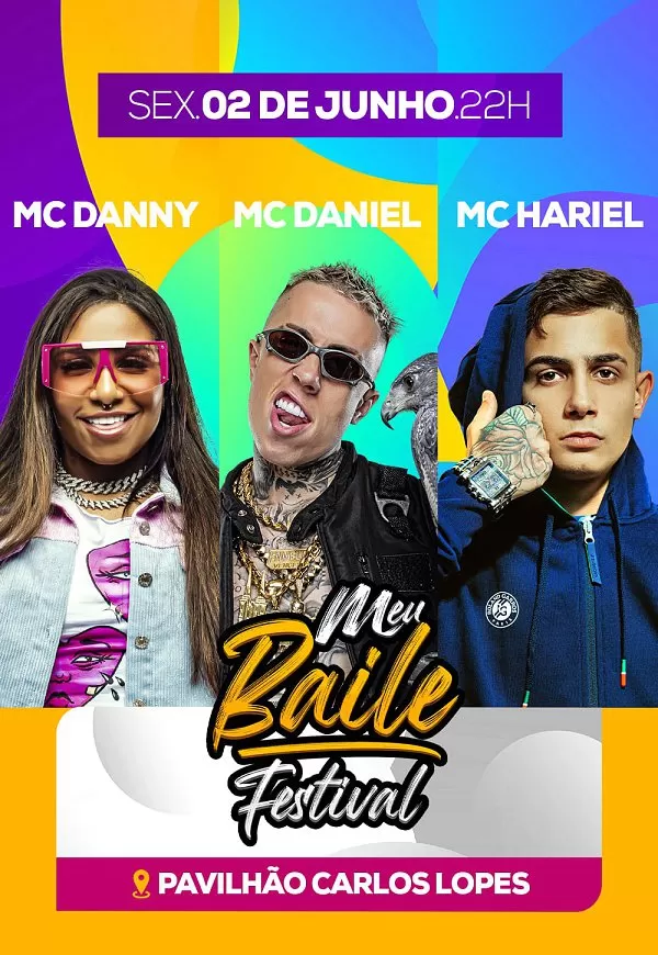 Dessa vez o “MEU BAILE” no formato “FESTIVAL” vem trazendo grandes nomes do funk como: MC Daniel, MC Hariel, MC Danny, entre outros.
