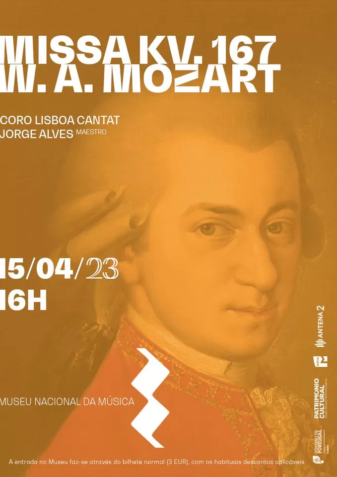 MISSA KV. 167 W.A. MOZART Coro Lisboa Cantat Jorge Alves, maestro MISSA KV. 167 W.A. MOZART + Adicionar ao Google Calendar + iCal / Outlook export Data 15 Abr 2023 Desde Hora 16:00 Localização Museu Nacional da Música R. João de Freitas Branco 12, 1500-359 Lisboa Categorias Concertos | MúsicaEventos ao Fim de Semana Share this event Teatro Stand up Comedy Infantil Música Eventos Gratuitos Exposições Este Fim de semana