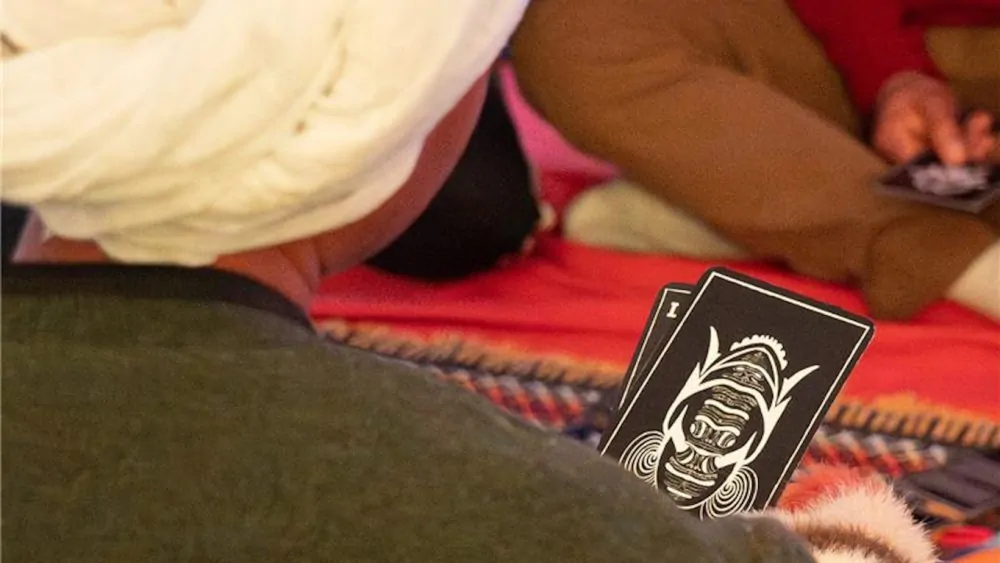 A sessão articula leituras encenadas de mitos cuír com uma prática coletiva em torno de um baralho mitológico criado pelo próprio artista. Cada carta funciona como um portal poético, abrindo espaço para imaginar outros modos de existência, relação e criação, num exercício de fabulação partilhada.
