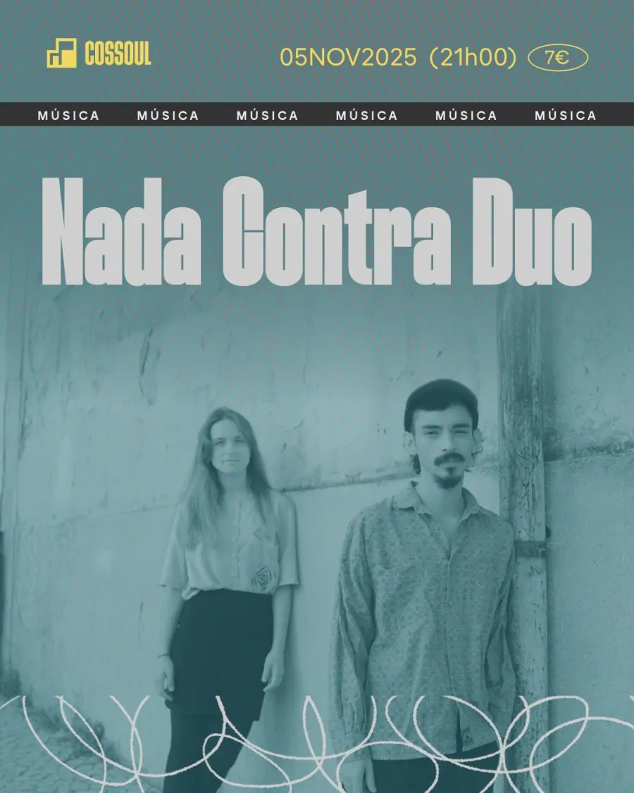 No dia 5 de novembro de 2025, às 21:00, o Nada Contra Duo sobe ao palco da Cossoul, na Rua Nova da Piedade, n.º 66, em Lisboa. O bilhete custa 7 €.