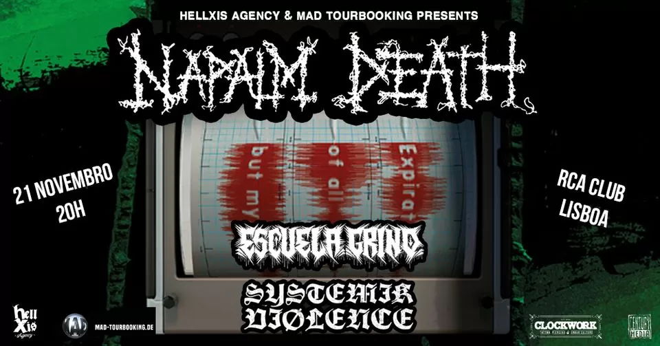 NAPALM DEATH + ESCUELA GRIND + SYSTEMIK VIOLENCE @ RCA Club – Lisboa