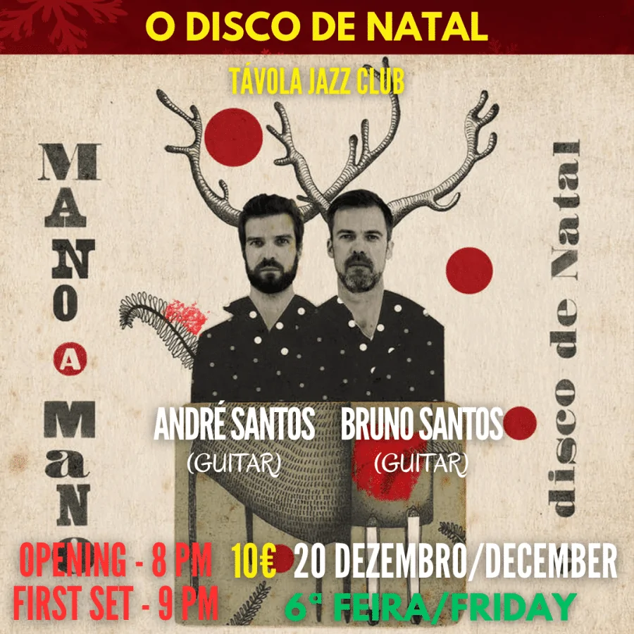 An unforgettable evening of Christmas jazz featuring two of Portugal’s most talented guitarists! André Santos and Bruno Santos will deliver an intimate performance celebrating the holiday season with jazz sophistication.