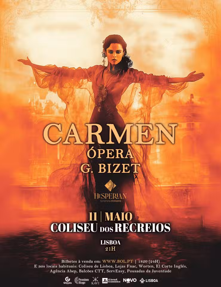 No 11 de maio de 2025, às 21:00, a famosa ópera Carmen, de Georges Bizet, chega ao Coliseu de Lisboa para uma apresentação inesquecível, com a Hesperian Symphony Orchestra. Considerada uma das óperas mais apresentadas em todo o mundo, Carmen cativa o público com sua trama de paixão, liberdade e tragédia.
