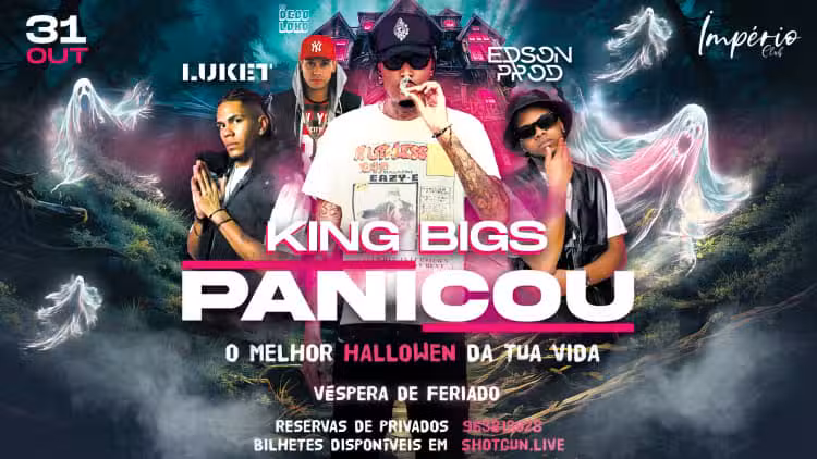 Prepara-te para a Panicoufest – Halloween Edition no Império Club! Vai ser uma noite repleta de surpresas e diversão, com performances incríveis dos DJs King Bigs, Edson Prod, Luket e Deco Loko.