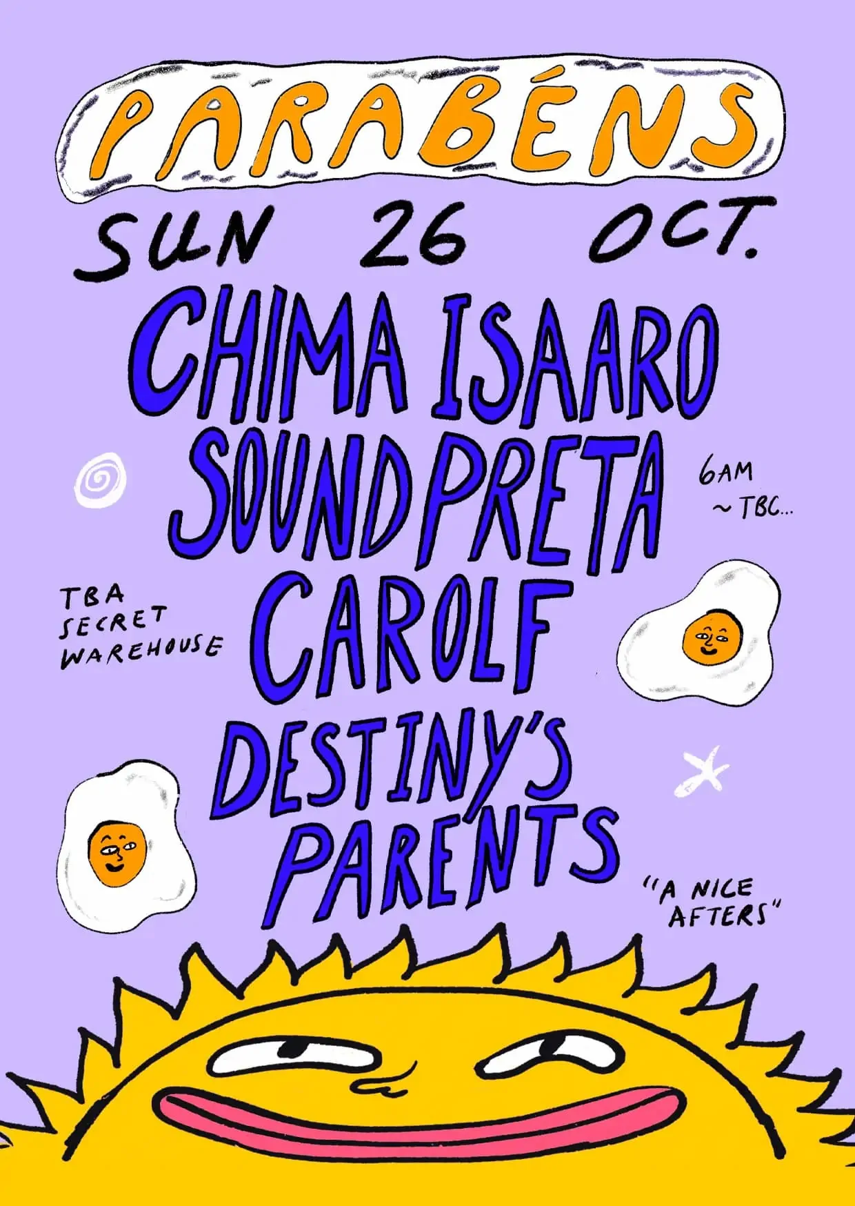 Depois de uma longa pausa, o coletivo Parabéns regressa com uma day rave cheia de boa energia, sons quentes e alma — agora de volta ao seu lar habitual, o Arroz Estúdios.