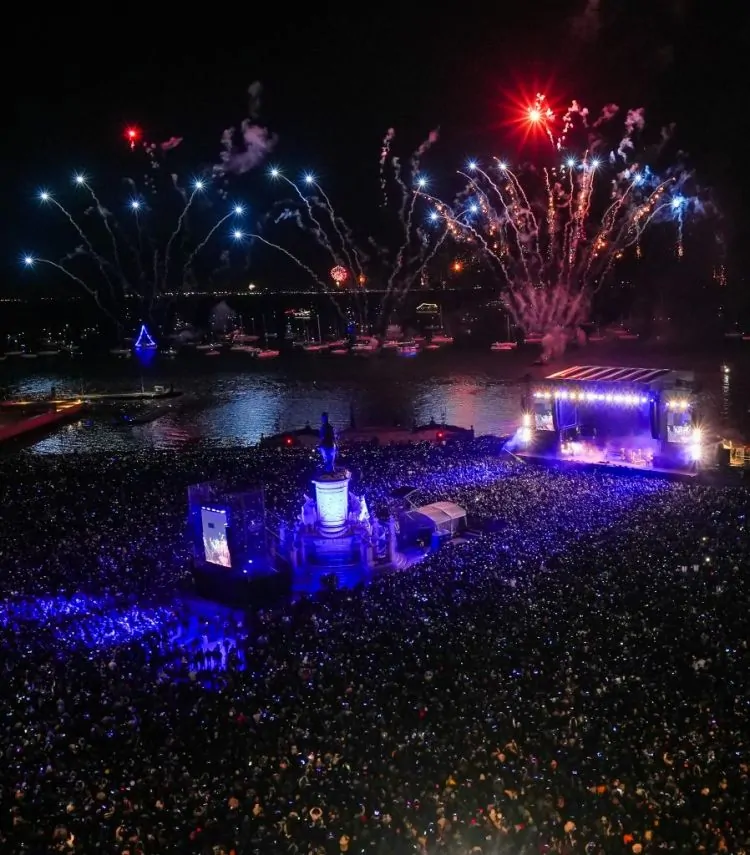 O cabeça de cartaz da noite, Plutonio, é o artista mais ouvido no Spotify em Portugal em 2025, conhecido pelo seu estilo que combina hip-hop, trap e RnB. A atuação coincide com as 12 badaladas, com dez minutos de fogo-de-artifício sobre o Tejo e 250 drones a iluminar o céu, garantindo um momento mágico para receber o Ano Novo.