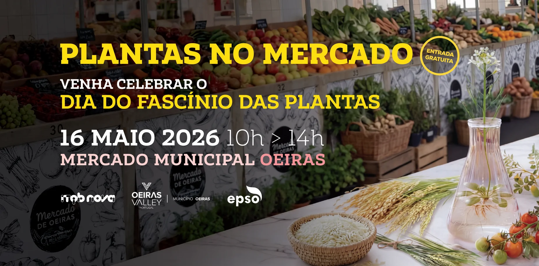 No dia 16 de maio 2026, sábado, o Mercado Municipal de Oeiras recebe uma manhã dedicada às plantas e à ciência. A iniciativa assinala o Dia do Fascínio das Plantas e o Dia Nacional do Cientista, e é organizada pelo ITQB NOVA, em parceria com o Município de Oeiras.