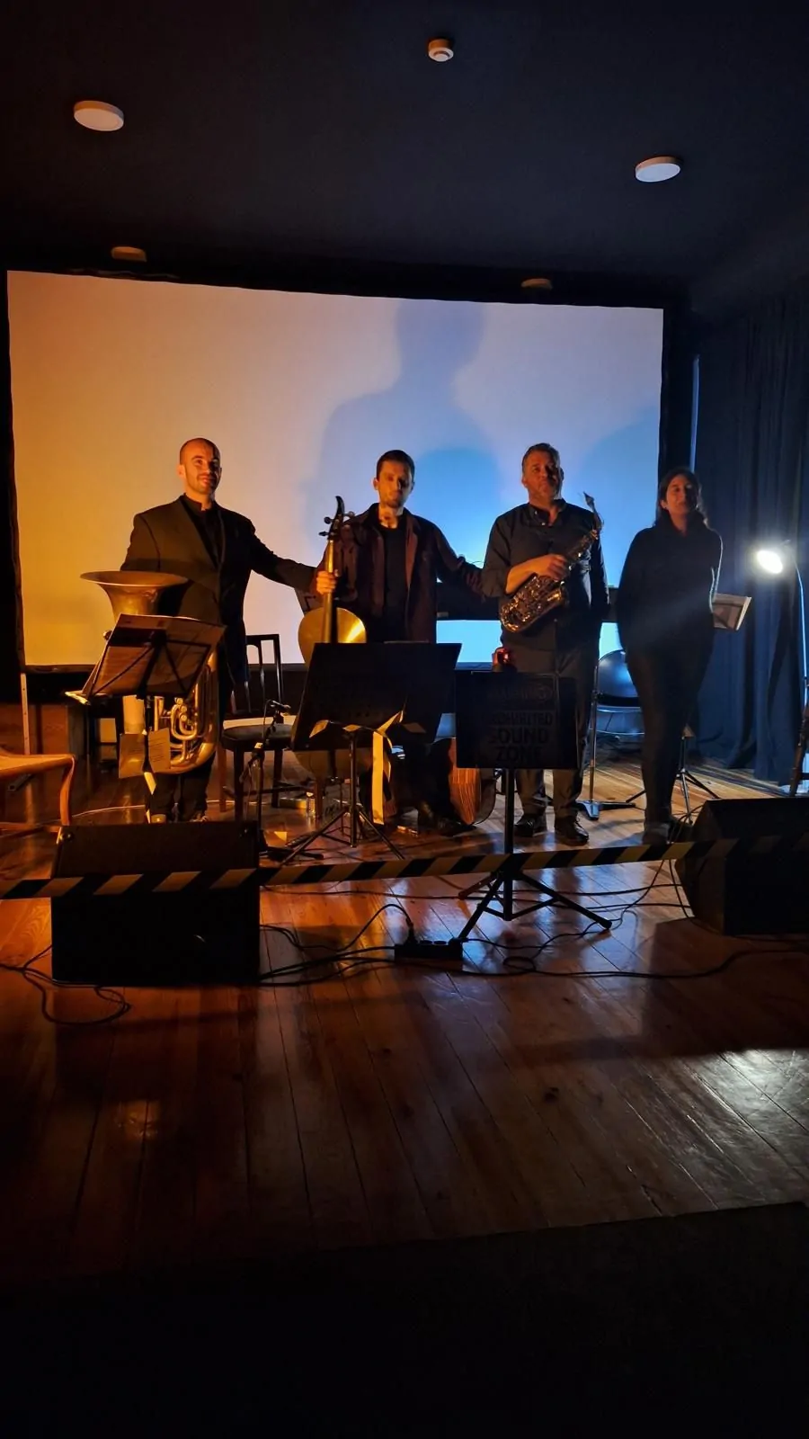 Projeto Prohibited Sound Zone – STV une saxofone (Hélder Alves), tuba (Tiago Santos) e violoncelo (Joaquim Caineta) em duos inovadores — sax/violoncelo (clássico-jazz ágil), sax/tuba (graves urbanos) —, intercalados por poesia declamada (voz como 4º instrumento), explorando câmara contemporânea e transdisciplinaridade.