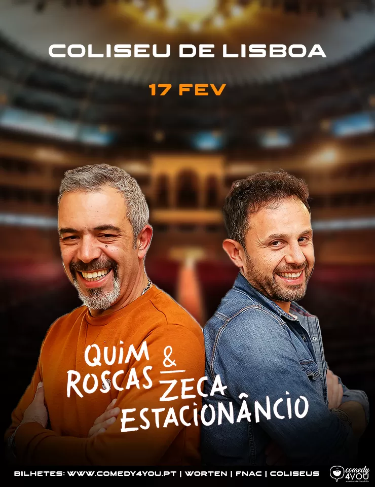Com um grande sentido de humor, Quim Roscas & Zeca Estacionâncio levam a palco um espetáculo hilariante onde não falta comédia, música, improviso e muita estupidez. Milhares de espetáculos realizados em mais de 20 anos de carreira com muitas gargalhadas, fazem com que João Paulo Rodrigues e Pedro Alves sejam, sem sombra de dúvidas, a dupla de humoristas de maior sucesso em Portugal. Esta dupla IM-PA-KÁ-VEL subirá ao palco do Coliseu dos Recreios em Lisboa, para lhe apresentar um espetáculo MA-RA-VI-LHO-SO!