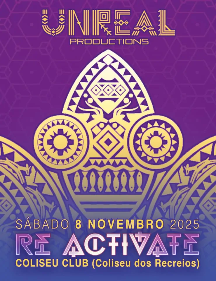 No dia 8 de novembro de 2025, Lisboa recebe a edição especial de RE-ACTIVATE | Unreal Productions – Re Activando Memorias Universais, no novo espaço Coliseu Club, integrado no histórico Coliseu dos Recreios. O evento começa às 23h45 e prolonga-se por mais de 6 horas de música e experiências sensoriais.
