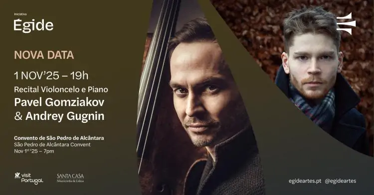 No dia 📅 1 de novembro de 2025, às ⏰ 19h00, o Convento de São Pedro de Alcântara recebe um recital de violoncelo e piano com os renomados artistas Pavel Gomziakov e Andrey Gugnin.
