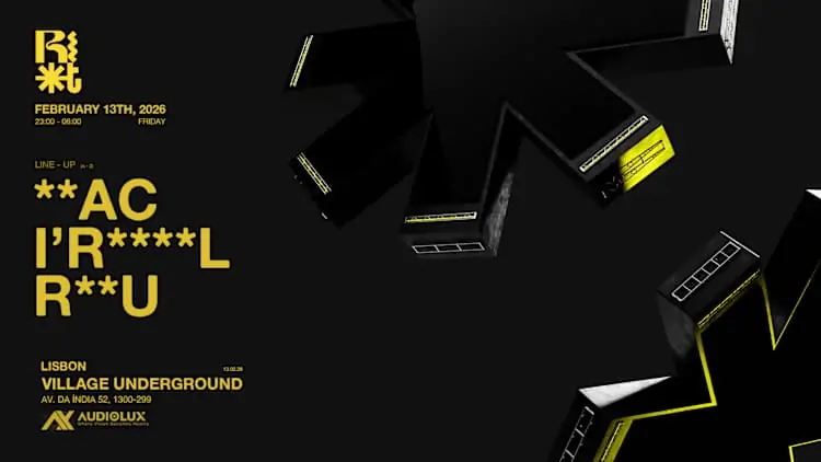 Após mais de um ano de espera, Riot X Audiolux regressa para uma noite que promete transformar Lisboa numa experiência audiovisual inesquecível. Produção de alto nível, conceptualizada e executada pela Audiolux, com foco em house e techno, proporcionando uma pista de dança envolvente do início ao fim. (shotgun.live)