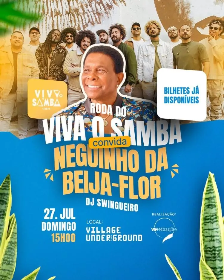 No dia 27 de julho de 2025, às 15:00, o Village Underground Lisboa recebe um evento imperdível para os amantes do samba: a Roda do Viva o Samba convida o lendário Neguinho da Beija-Flor, acompanhado do contagiante DJ Swingueiro.