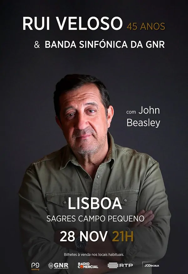 O icónico músico português Rui Veloso, conhecido como o “pai do rock português”, apresenta-se em Lisboa com um concerto especial que assinala 45 anos de carreira, acompanhado pela Banda Sinfónica da GNR e com arranjos exclusivos de John Beasley, renomado músico e compositor de jazz norte-americano. Uma noite memorável que une clássicos do repertório de Rui Veloso a interpretações sinfónicas de tirar o fôlego.