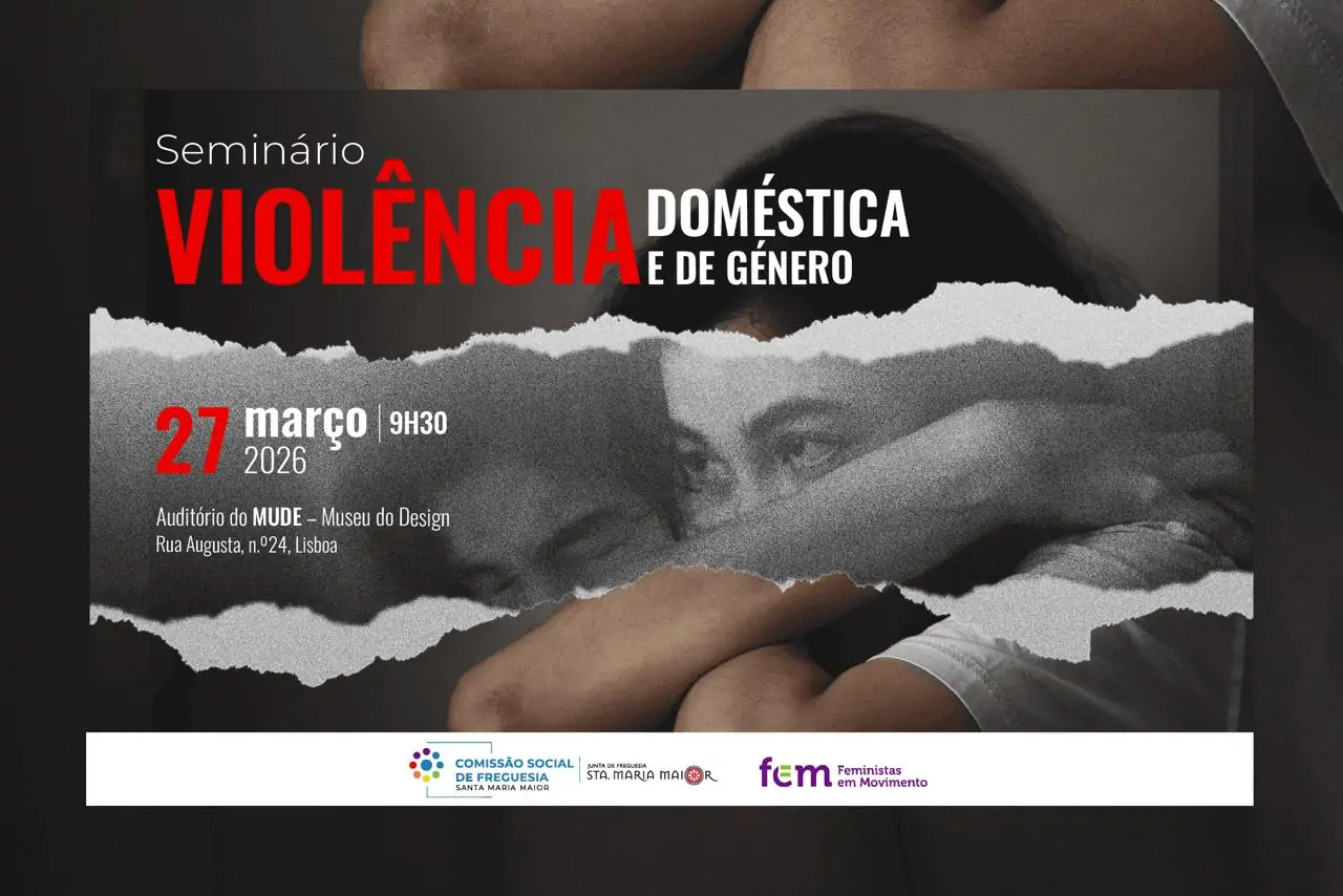 A Junta de Freguesia de Santa Maria Maior, através da Comissão Social de Freguesia, e a FEM – Feministas em Movimento promovem no próximo 27 de março de 2026 o seminário “Violência Doméstica e de Género”, a realizar no Auditório do MUDE – Museu do Design, em Lisboa.
