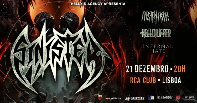 Prepare-se para uma noite de death metal extremo no RCA Club, Lisboa, com a lendária banda holandesa Sinister e convidados especiais.
