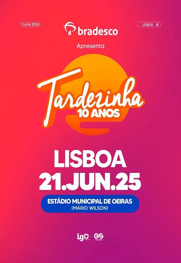 O evento “Tardezinha” é uma celebração autêntica da cultura brasileira, trazendo uma fusão única de samba e pagode. Thiaguinho lidera o espetáculo, garantindo muita animação, energia e momentos memoráveis para todos os presentes. Venha sentir o calor do Brasil em Portugal, em uma festa cheia de alegria e música ao vivo que vai contagiar o Estádio Municipal de Oeiras!