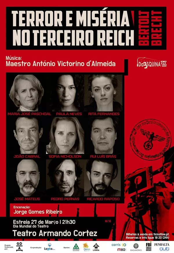 A adaptação proposta parte de algumas das 27 cenas que compõem Terror e Miséria do Terceiro Reich Escrita durante o exílio dinamarquês de Bertolt Brecht a partir de 1935 e editado em Praga em 1938 a peça, com forte cariz político e crítica social mordaz, traça um amplo retrato da vida quotidiana na Alemanha nazi, baseada em relatos de testemunhas oculares e notícias de jornal “O que tem de ser especialmente destacado”, notou o dramaturgo alemão, é “o comportamento típico de várias classes sob a ditadura fascista, o conjunto de comportamentos de precaução, de defesa, de medo, mas também de revolta” Com esta peça, Brecht pretendeu dar continuidade não apenas ao teatro político, mas também às experiências do teatro épico nas condições sociais, políticas e culturais.