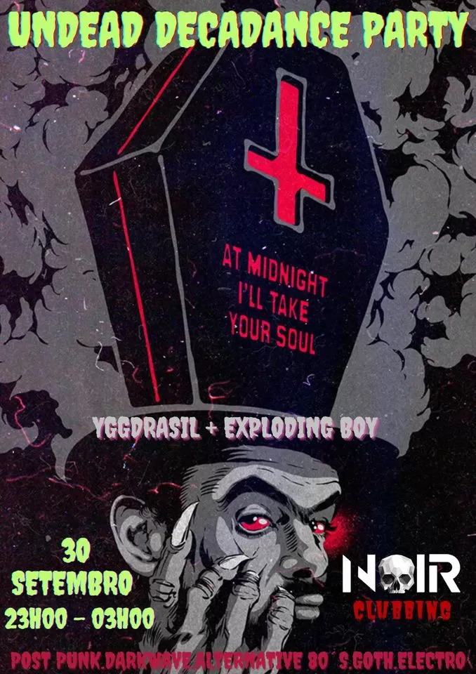 Undead Decadence Party Sábado 30 de Setembro Hosts: Yggdrasil (Graveyard Thrills) Exploding Boy (She Pleasures Herself) Das 23:00 às 3:00 Entrada 3 Noir