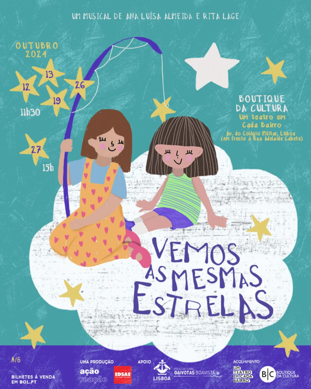 “Vemos as Mesmas Estrelas” é um musical para toda a família! O espetáculo segue o crescimento de duas crianças, Matilde e Mafalda, que sonham com o universo e com as estrelas. Desde o início do ensino básico ao final do ensino secundário, acompanhamos