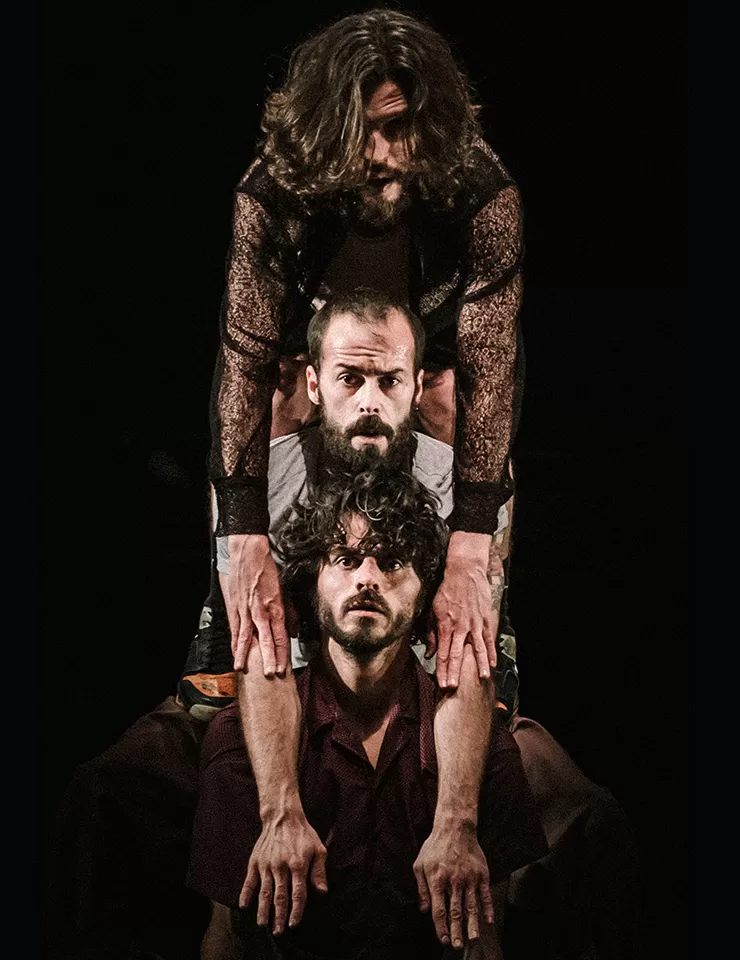 “Não trabalho com palavras, mas sim com movimentos, o que vai tornando progressivamente difícil escrever sobre os meus espetáculos. Mas uso muitas vezes as palavras como ponto de partida, como meio e até como fim. Acabo quase sempre por retirá-las da boca dos intérpretes, ou por calar os autores. Desta vez, não foi assim: as palavras do Gonçalo M. Tavares estão presentes em “Os Três Irmãos”. São o motor da ação e surgem no espetáculo para serem lidas, e não ditas. A força da sua presença é por isso diferente – são palavras que não se ouvem, mas que conduzem o espectador. “Os Três Irmãos” é um projeto de vontades: trabalhar com um elenco pequeno, depois de sucessivas criações com elencos de mais de dez intérpretes; trabalhar a partir de um texto do Gonçalo M. Tavares, autor em cujo universo sempre tive vontade de mergulhar; trabalhar o aqui e o agora. Acontece que nunca imaginei que o aqui e o agora fosse este que estamos a viver. Não sendo possível prever o futuro, em momento algum teria sido imaginável há um ano, por exemplo, a realidade dos dias de hoje. Ainda não sei bem se isto é realidade ou ficção, aliás. Foi também por isso que desafiei o Gonçalo M. Tavares a escrever sobre «assuntos de família» para os intérpretes Dinis Duarte, Paulo Mota e Valter Fernandes. Depressa concluímos que seria uma família de três irmãos e que a ação seria sobre este presente cheio de ausência. Por exemplo, a ausência de pessoas que entretanto morreram e de quem não pudemos despedir-nos. Não era minha vontade retratar esta realidade-ficção que vivemos, e talvez por isso tenha preferido ficar de algum modo no passado, quando o contacto e o toque ainda nos era possível. É também desse passado que nos fala “Os Três Irmãos”. Vivemos agora numa anomalia e não numa nova normalidade, e a família é o que temos de mais seguro e de mais frágil. Como escreveu Tolstói em Anna Karenina: “Todas as famílias felizes se parecem umas com as outras, cada família infeliz é infeliz à sua maneira”.