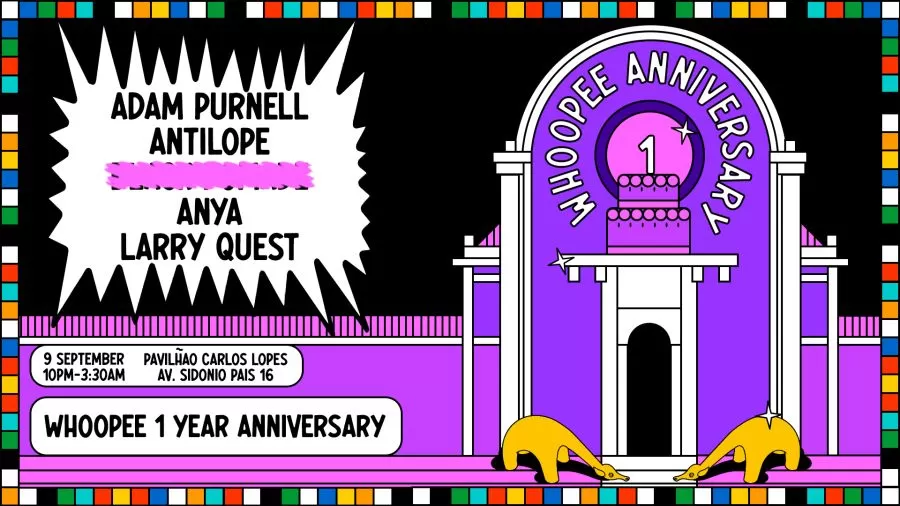 🧸🪁🍭🫧 Mark your calendars for the big day: September 9th, when we’ll light up Whoopee’s very first candle for a truly unforgettable night at the gorgeous Pavilhão Carlos Lopes. 🎧 LINE UP – Anya from Javybz – Adam Purnell – Antilope – Larry Quest – ??? – ??? 🗓 DATE Saturday the 9th of September 10PM – 3:30AM