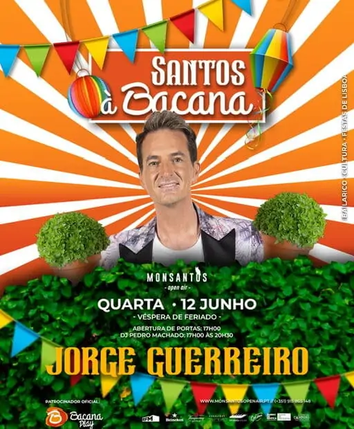 Santos à Bacana com JORGE GUERREIRO Data: 12 de junho Horário: 17:00h Local: Monsantos Open Air Descrição: Cheira bem, cheira a Monsantos! 𝗦𝗔𝗡𝗧𝗢𝗦 𝗔̀ 𝗕𝗔𝗖𝗔𝗡𝗔 🥳 𝗕𝗮𝗶𝗹𝗮𝗿𝗶𝗰𝗼 ∙ 𝗖𝘂𝗹𝘁𝘂𝗿𝗮 ∙ 𝗙𝗲𝘀𝘁𝗮𝘀 𝗱𝗲 𝗟𝗶𝘀𝗯𝗼𝗮 Abertura de…